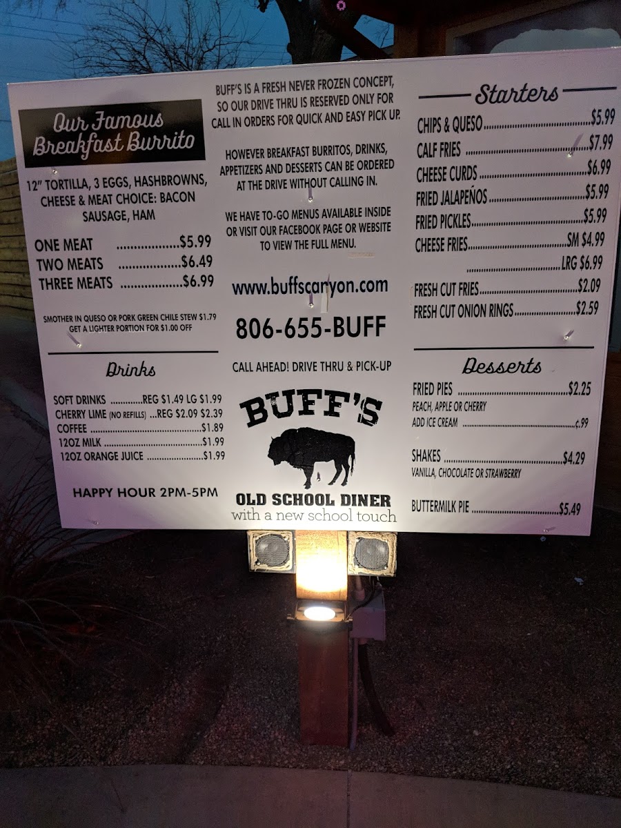 Welcome to Buff's, your new go-to spot in Canyon, TX, dedicated to satisfying all your comfort food cravings. Nestled at 2201 4th Ave, Buff's specializes in hearty meals from breakfast delights to lunch and dinner options. Start your day with the Big Biscuits & Gravy or experience the Buff Special, featuring juicy patties topped with grilled onions and jalapeños. For a sweeter touch, don't miss the Chicken and Waffles, a perfect blend of savory and sweet.